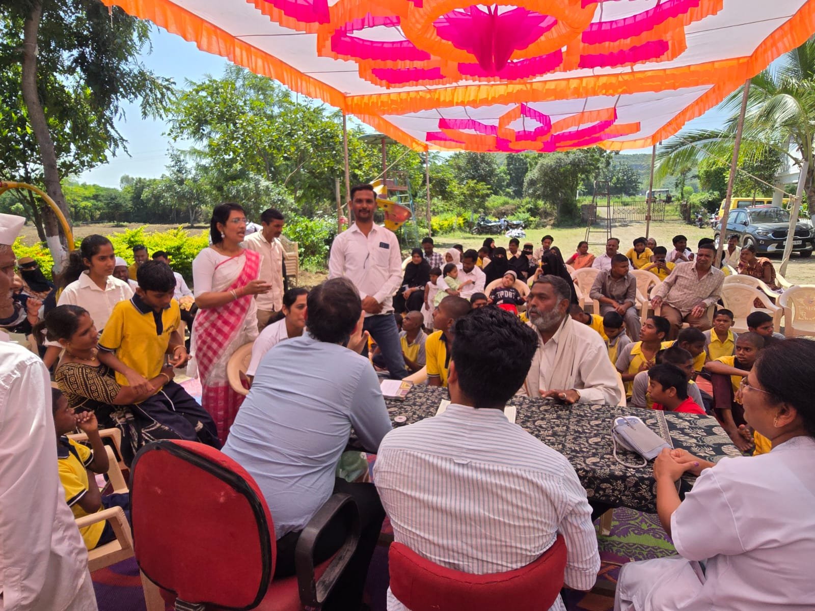 प्रतिनिधी छत्रपती संभाजी नगर : अखिल महाराष्ट्र ग्रामीण शिक्षण विकास मंडळाचे शरदचंद्र पवार मतिमंद विद्यालय आपुलकी निवास मतिमंद विद्यालय जटवाडा रोड छत्रपती संभाजी नगर व सावली मतिमंद विद्यालय जालना यांच्या वतीने मतिमंद मुलांची वैद्यकीय तपासणी व पालक मेळावा संपन्न झाला असे की शरदचंद्र पवार मतिमंद विद्यालय आपुलकी मतिमंद कर्मशाळा व सावली मतिमंद विद्यालय जालना या शाळेत मतिमंद मुला-मुलींचे वैद्यकीय तपासणी मानसिक आरोग्य तज्ञ माननीय श्री डॉक्टर चिन्मय बराळे राहुल कडे व त्यांचे सहकाऱ्यांनी 80 मतिमंद मुलांची तपासणी करून आजाराचे निदान केल्यानंतर औषधोपचार करण्यात आले त्यानंतर मतिमंद मुलांच्या पालकांचा मेळावा आयोजित करून पालकांना त्यांच्या मुलांबाबत माहिती दिली व त्यांच्याकडून सूचना घेतल्या या कार्यक्रमास संस्था अध्यक्ष माननीय श्री बादशाह पटेल, माननीय डॉक्टर चिन्मय वराळे, डॉक्टर राहुल कळते, डॉक्टर दिसेना पटेल, डॉक्टर शोएब कादरी, मुख्याध्यापक श्री साजिद पटेल, सय्यद जावेद, विजय महाजन, साध्या पठाण, अमोल बदर, सुनील बदर व संपूर्ण पालक उपस्थित होते हा कार्यक्रम यशस्वी करण्याकरिता शाळेतील सर्व कर्मचाऱ्यांनी सहकार्य केले शेवटी आभार श्री संदीप बडक यांनी मांडले.
