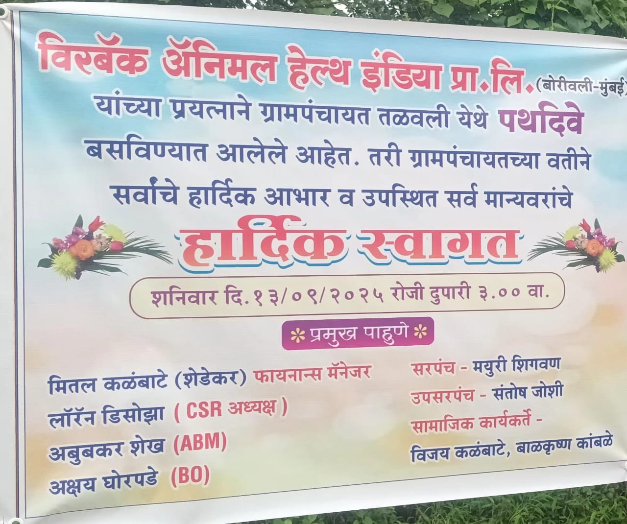 याबाबत सविस्तर वृत्त असे की, महिनाभरापूर्वी गावातील विजय कळंबाटे व बाळकृष्ण कांबळे या दोघांनी तळवली ग्रामपंचातीला एका कंपनीकडून आपल्या ग्रामपंचायतीला पथदिवे मिळणार आहेत ; मात्र त्यांना ग्रामपंचायतीचे मागणीपत्र हवे असल्याचे सांगितले. त्यानुसार ग्रामपंचायतीने ‘विरबॅक ॲनिमल हेल्थ इंडिया प्रा. लि. (बोरिवली, मुंबई) या कंपनीला देण्यासाठी त्यांच्याकडे पत्र दिले. यानंतर काही दिवसांनी या दोन व्यक्तींनी गावामध्ये पथदिवे बसविण्यास सुरुवात केली. यावेळी ग्रामस्थांनी विचारणा केली असता आम्ही दिवे आणले आहेत, याच्याशी ग्रामपंचायतीचा काहीही संबंध नाही असे सांगितले. मात्र त्यानंतर कंपनीच्या अधिकाऱ्यांनी गावात बसविलेले दिवे पाहण्यासाठी भेट दिली यावेळी या अधिकाऱ्यांचा स्वागताचा कार्यक्रम एका घरामध्ये घेण्यात आला आणि त्यावेळी कंपनीला दाखविण्यासाठी ग्रामपंचायतीच्या वतीने स्वागताचा बॅनर लावण्यात आला. तसेच ग्रामपंचायतचे उपसरपंच व एक सदस्य यांना बोलावण्यात आले. या कार्यक्रमाचे उपसरपंचांनी स्टेटस ठेवले आणि यांचे पितळ उघडे पडले. याविषयी ग्रामपंचायतला कोणत्याही प्रकारची कल्पना नव्हती. ग्रामपंचायतीची कोणतीही परवानगी न घेता परस्पर ग्रामपंचायतीचा बॅनर वापरून कंपनीची दिशाभूल करण्यात आली.
