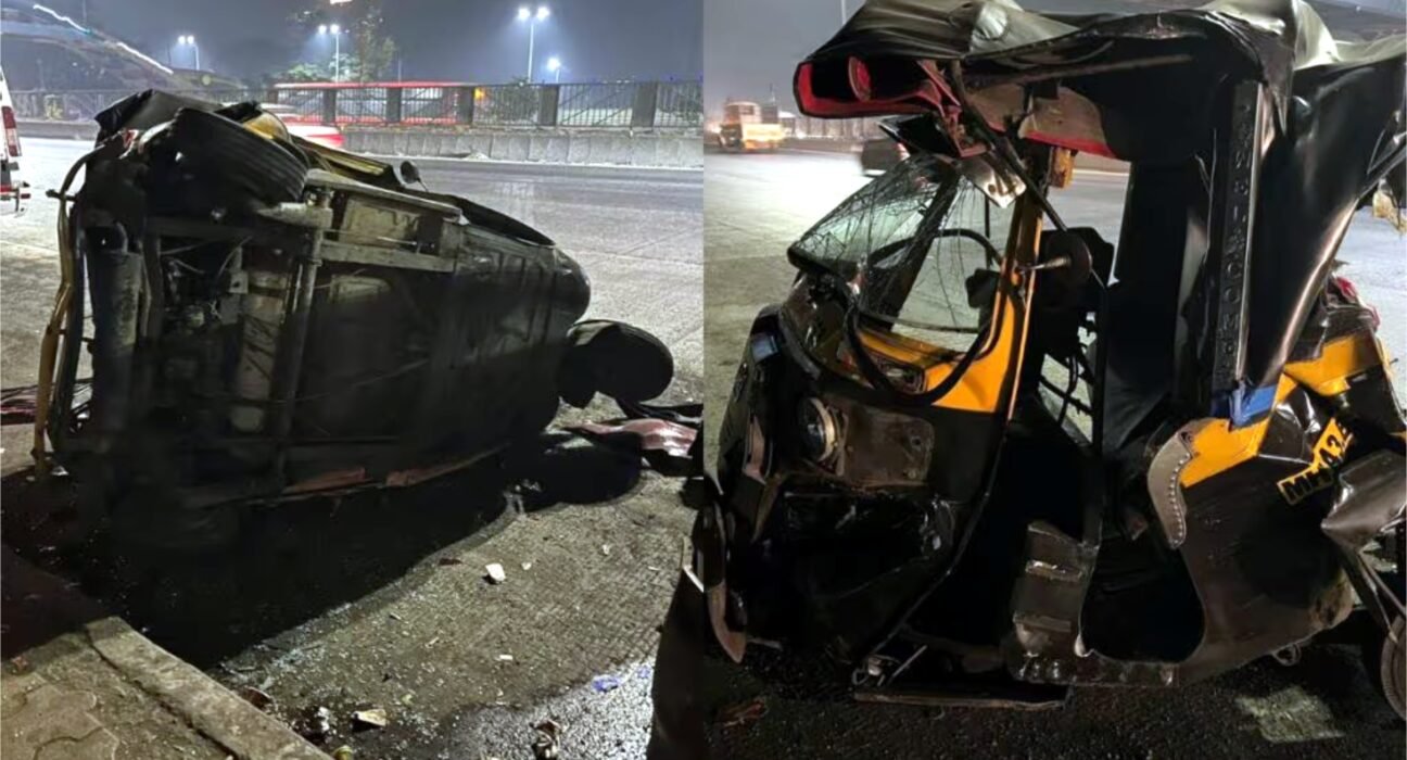 नवी मुंबई : आज सकाळी सहाच्या सुमारास शीव पनवेल महामार्गावर जुईनगर रेल्वे स्टेशन समोर एका भरधाव कारने दोन रिक्षांना जोरदार धडक दिली. या अपघातात एक रिक्षा चालक ठार झाला तर दोन्ही रिक्षांचा चक्काचूर झाला.