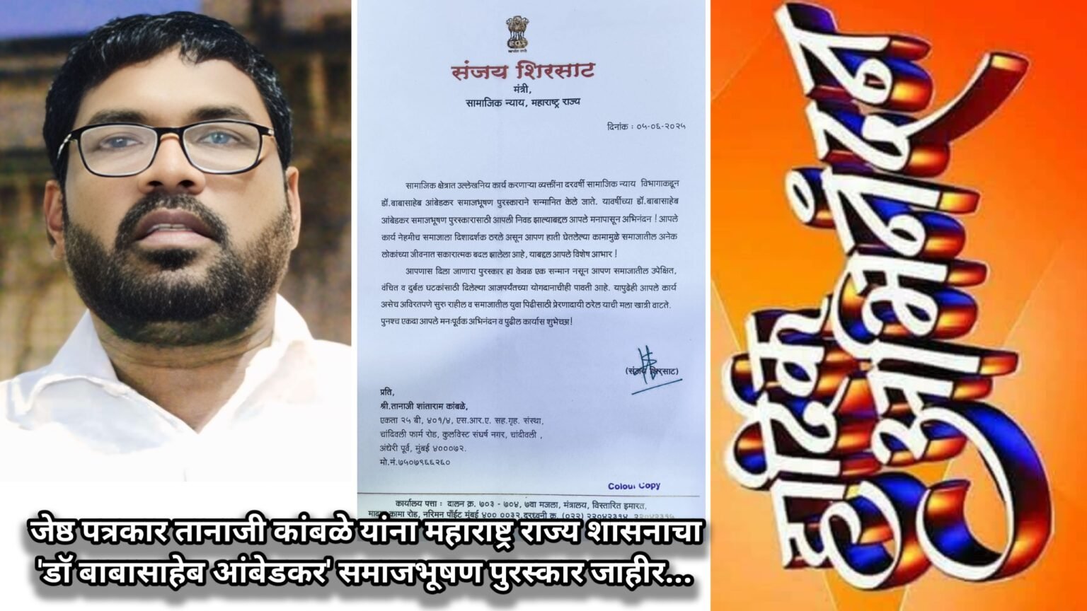 मुंबई (अंकुश हिवाळे) : मागील २५ वर्षाहून अधिक काळ पत्रकारिता आणि सामाजिक क्षेत्रातील उल्लेखनीय कार्याबद्दल ज्येष्ठ पत्रकार आणि सामाजिक कार्यकर्ते तानाजी कांबळे यांना महाराष्ट्र सरकारने डॉ. बाबासाहेब आंबेडकर समाजभूषण पुरस्कार पुरस्कार जाहीर केला आहे.तानाजी कांबळे हे अन्याय,अत्याचाराच्या विरोधात संघर्ष करणारे लढवय्ये कार्यकर्ते म्हणून त्यांची ओळख आहे.