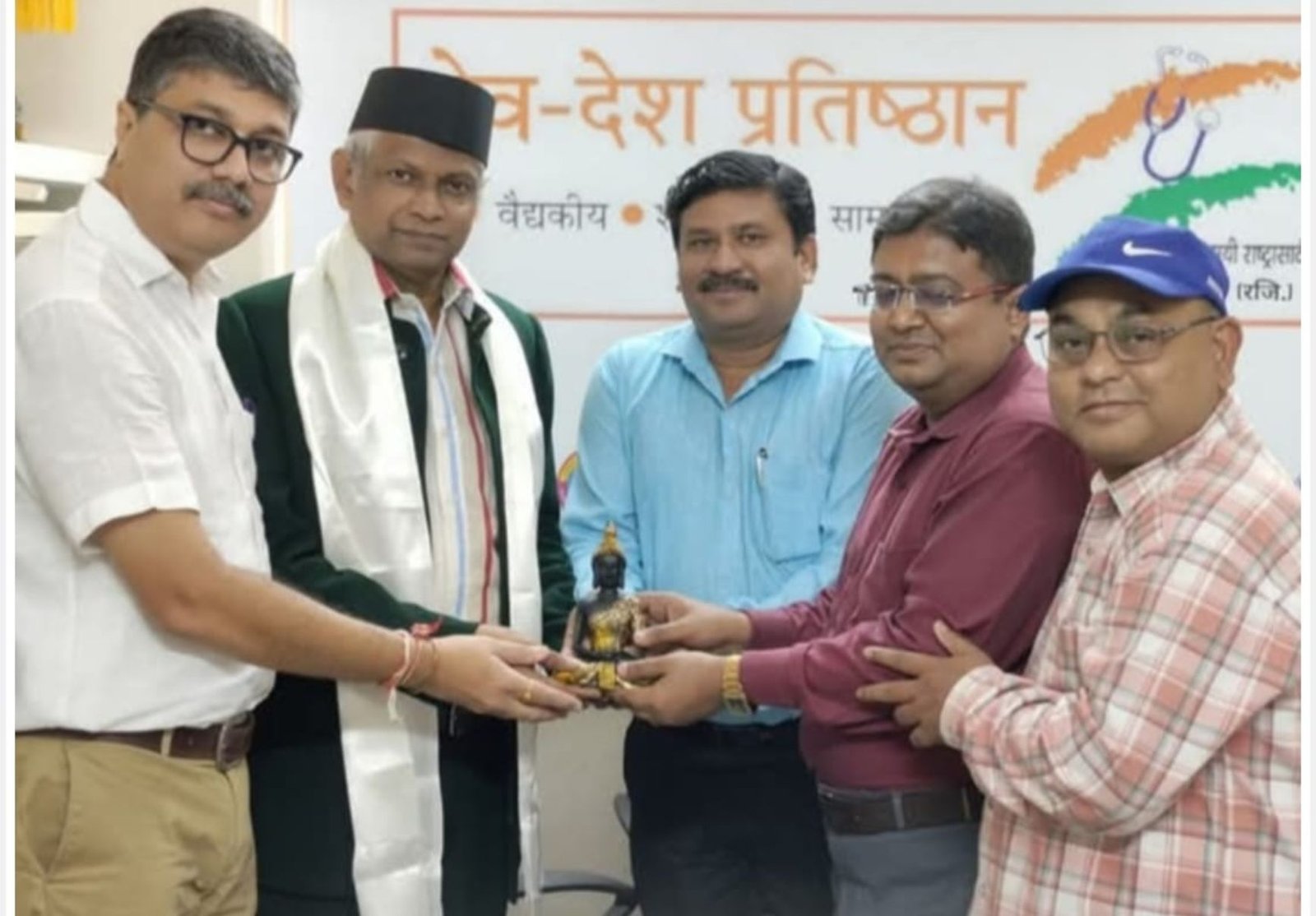 यावेळी देव देश प्रतिष्ठानचे अध्यक्ष माननीय डॉक्टर वैभव गिरकर देव देश प्रतिष्ठानचे डॉक्टर रवींद्र कांबळे संविधान वार्ताचे मुख्य संपादक विनोद कांबळे आणि छबी सहयोग फाउंडेशन चे पार्था रॉय यांनी त्यांना बुद्ध मूर्ती देवून त्यांचे स्वागत केले.