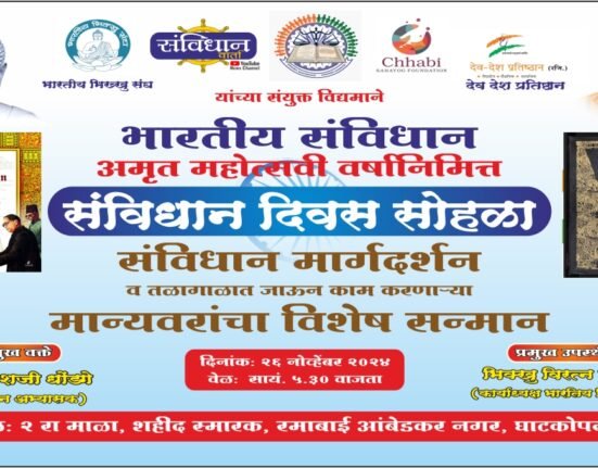 दि 26 नोव्हेंबर 2024 रोजी सायंकाळी 5.30 वाजता भारतीय भिक्खू संघ, देव देश प्रतिष्ठान, छबी सहयोग फाउंडेशन आणि संविधान वार्ता यांच्या संयुक्त विद्यमाने